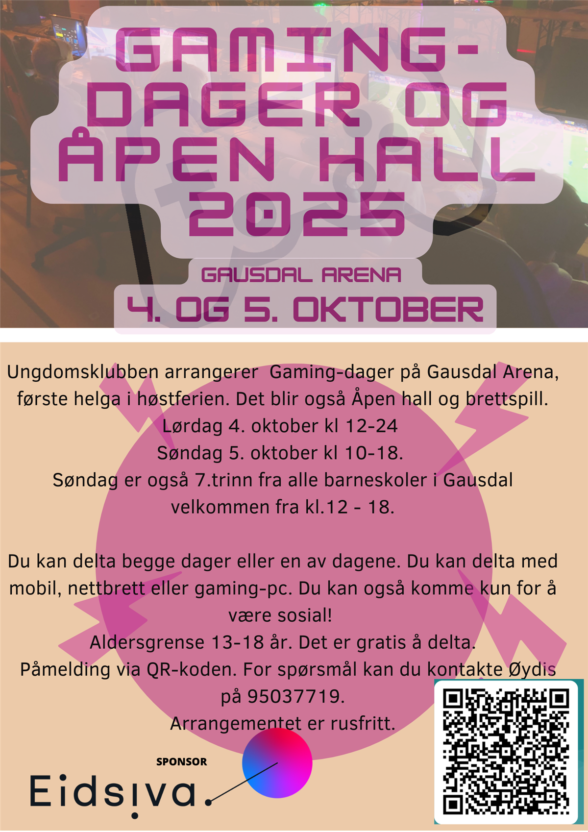 Høstferietilbud for barn og ungeHer finner du informasjon om høstferietilbud for barn og unge i Gausdal.Se hva som skjer i høstferienLes mer om hva som aktiviteter og arrangement på Skeikampen og området rundtLes mer om Lillehammer kommune sine høstferietilbudLes mer om program i Lillehammerregionen for familier Les mer om program for barn i LillehammerregionenTips oss gjerne om tilbud som vi ikke har i vår oversikt. Høstferietilbud Frivilligsentralen sitt høstferietilbudFrivilligsentralen arrangerer gratis høstferietilbud for elever som går på mellomtrinnet i Gausdal. Man kan melde seg på en eller flere dager. Vi er 2 voksne og 2 ungdommer på 18 år som skal være med disse tre dagene.ProgramSøndag 5.oktober: Hunderfossen. Buss kl. 10.30 fra Gausdal Arena. Retur kl.16.Mandag 6.oktober: Barnas Gård-Hunderfossen. Buss kl. 11.00 fra Gausdal Arena. Retur kl. 15.00. Tirsdag 7.oktober: Peppes Pizza og kino. Buss kl. 10.45 fra Gausdal Arena. Retur kl. 15.00. Pizzalunsj før kino. Vi ser filmen “Grevlingene”. Påmelding Meld deg påPåmeldingsfrist mandag 29.september kl. 10.00. Vi deler også ut gavekort på Jorekstad som kan benyttes i høstferien. Ta kontakt hvis barnet skal ha med seg ledsager/assistent. Med forbehold om endringer! Følg med på facebooksiden til FrivilligsentralenInfoskriv med detaljer: Informasjonsskriv (DOCX, 18 kB)Tine Andersen på tlf. 960 12 521Håndballskole Gausdal håndballklubb, i samarbeid med Rema 1000 og Norges håndballforbund arrangerer 3 dager med håndballskole i uke 41 for barn som går i 1-7 klasse. Dette foregår på Gausdal Arena. Pris: 500 kr. Les mer og tilbudet og påmelding her: REMA 1000 Håndballskole i høstferien Ferie for alle- Røde KorsRøde Kors arrangerer “Ferie for alle”. Les mer om tilbudet herGamingdager og åpen hall