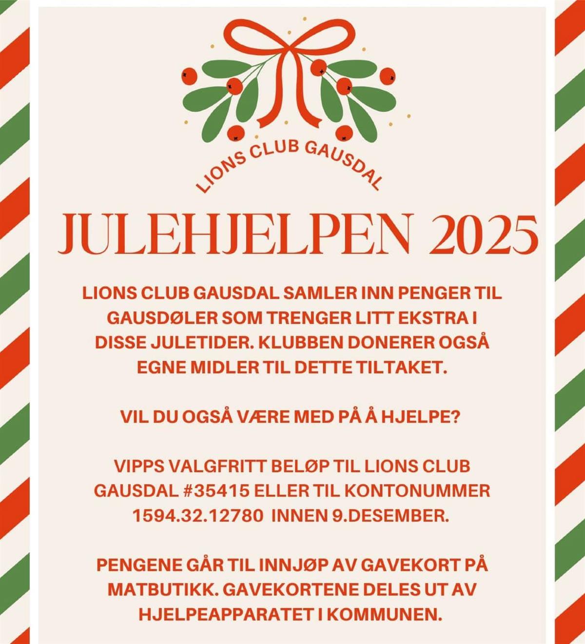 Lions club Gausdal fortsetter tradisjonen med å samle inn penger til gausdøler som trenger litt ekstra til jul. De utfordrer både privatpersoner og bedrifter til å gjøre det samme.